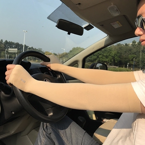 防晒手袖护臂套防紫外线加长款手臂套袖套女冰袖男士冰丝夏季肉色